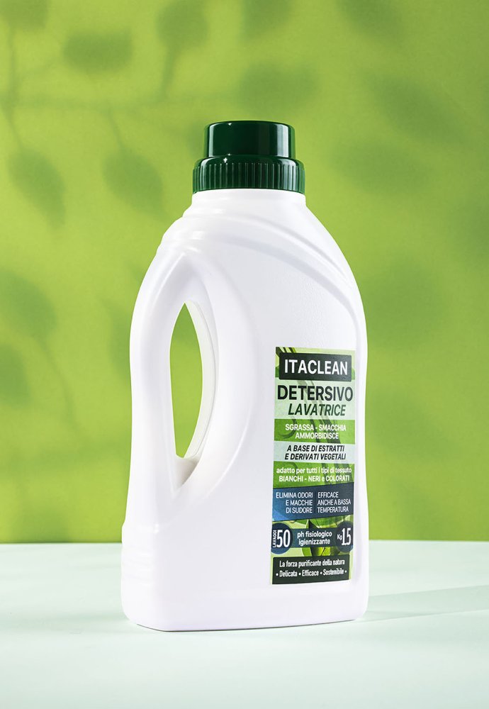Il detersivo lavatrice ITACLEAN è una crema lavante ecologica a base di estratti e derivati vegetali, attiva anche a basse temperature. Sgrassa, smacchia e ammorbidisce tutti i tipi di tessuti – bianchi, neri e colorati – lasciando una piacevole fragranza floreale. Rimuove efficacemente odori e aloni di sudore, rinnova i colori, igienizza e protegge il cestello della lavatrice da residui e calcare.